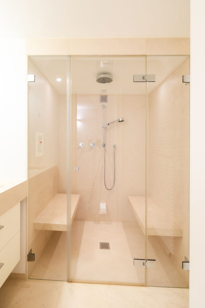Highlight ist der über 70 m² große Wohn- und Essbereich mit direktem Zugang zur uneinsehbaren Sonnenterrasse mit zwei elektrisch ausfahrbaren Markisen. Großzügige Grundrissgestaltung, Lichtkuppel im Flur, maßgefertigte Schreiner-Einbauten mit Eichenfurnier (ca. 8 lfm) sowie ein exklusiver Wellnessbereich mit Sauna, Whirlpool und Dampfbad unterstreichen den gehobenen Wohnkomfort.