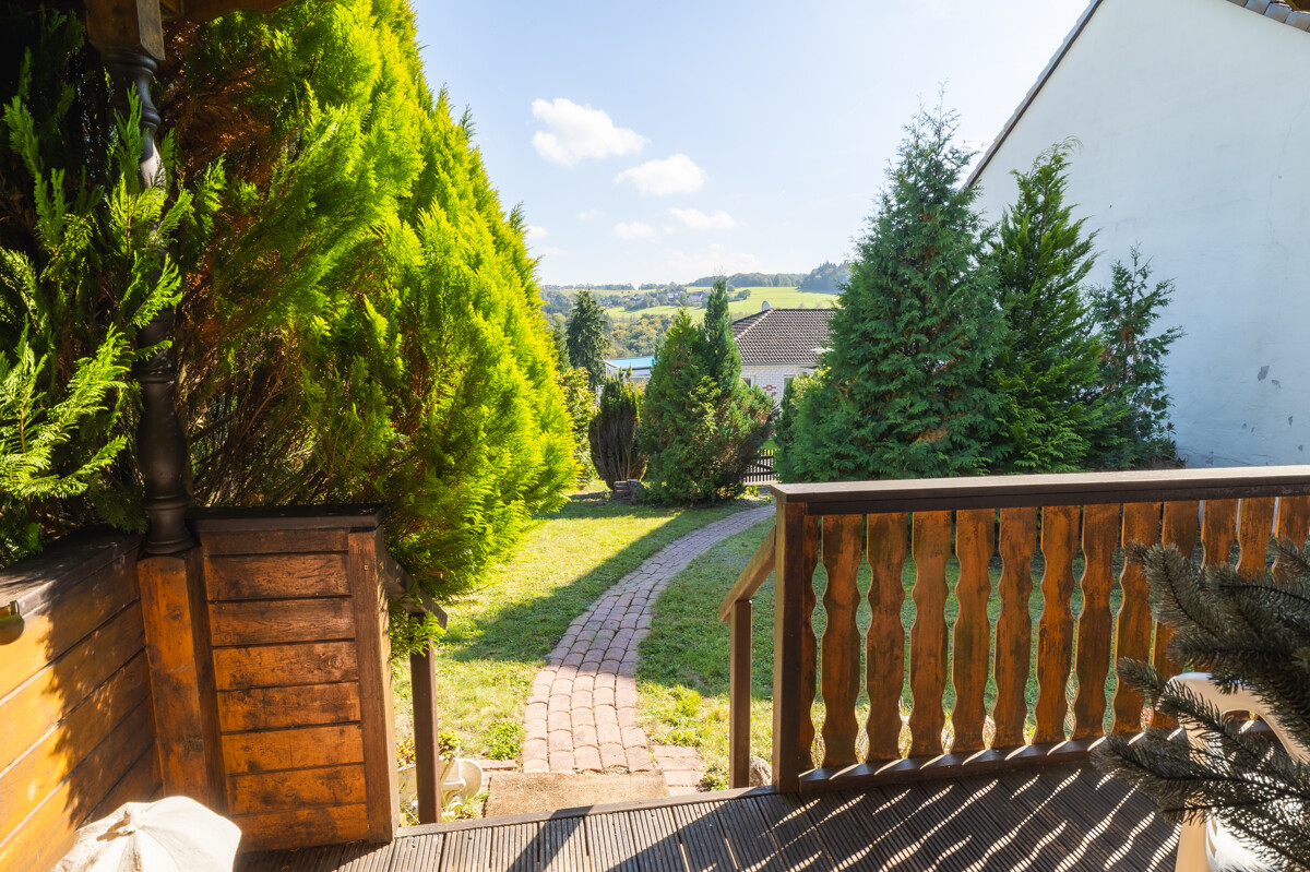 Der Außenbereich ist ein Highlight dieses Anwesens. Eine überdachte Terrasse lädt zum Verweilen ein und bietet einen schönen Blick auf den gepflegten Garten. Ein kleines Teehaus im Garten bietet zusätzlichen Raum für entspannte Stunden. Ein Gerätehäuschen sorgt für praktischen Stauraum.