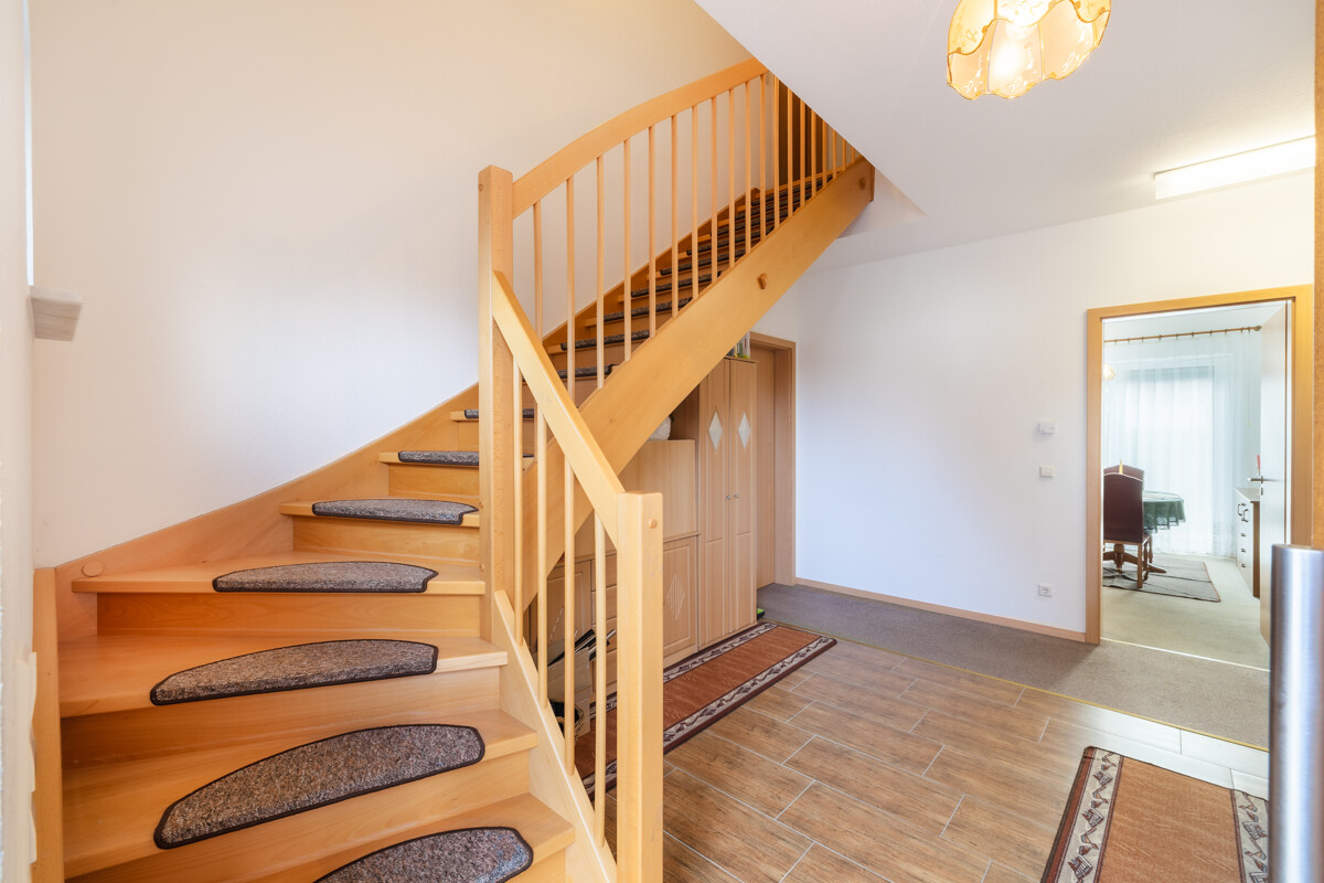 Die ruhige Nachbarschaft und die direkte Nähe zu Kindergarten und Schulen machen dieses Haus besonders attraktiv für Familien mit Kindern.