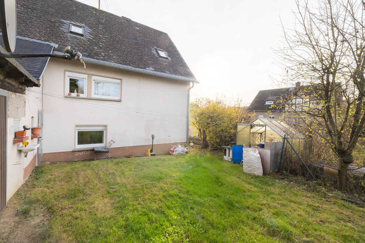 Die Bauweise bringt Geschichte mit: Bruchsteinfundamente, ursprüngliches Fachwerk, später massive Decken, Brandwand zur Scheune, Stampfbetonfundamente und Bimssteinmauerwerk im erweiterten Gebäudeteil. Das Dach wurde über die Jahre immer wieder gepflegt und zuletzt 2025 am Anbau erneuert.
