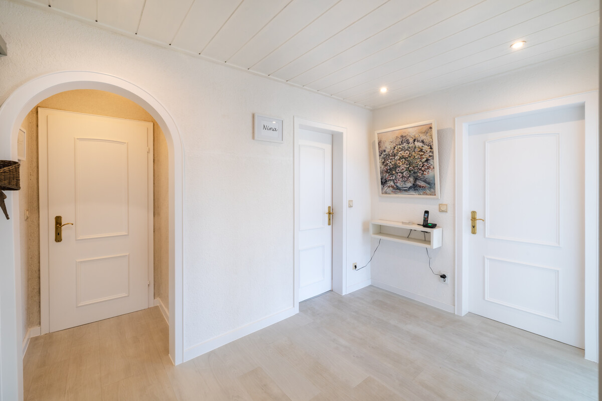Schon beim Betreten des Hauses wird deutlich, dass hier die Wohnqualität im Mittelpunkt steht. Die Wohnräume präsentieren sich offen und lichtdurchflutet. Großzügige Fensterfronten holen das Tageslicht ins Haus und eröffnen einen freien Blick über Hümmerich. Die erhöhte Lage und die weitläufigen Glasflächen schaffen eine besondere Atmosphäre – ruhig, klar und mit einem spürbaren Gefühl von Freiheit.