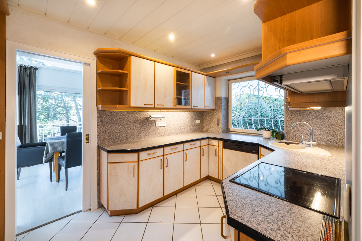 Ergänzt wird diese Ebene durch eine kleine, moderne Kochküche. Sie eignet sich hervorragend als Bestandteil einer zweiten Wohneinheit – beispielsweise für ein erwachsenes Kind – oder alternativ als praktische Ergänzung für die Terrassennutzung und das Wohnen im Gartengeschoss.