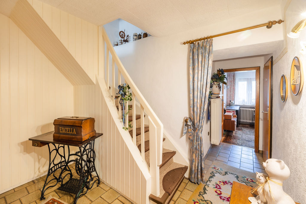 Sanierung und Erweiterung erfolgten 1971, eine Baugenehmigung liegt vor. Ein Teil-Keller sorgt für zusätzlichen Stauraum.