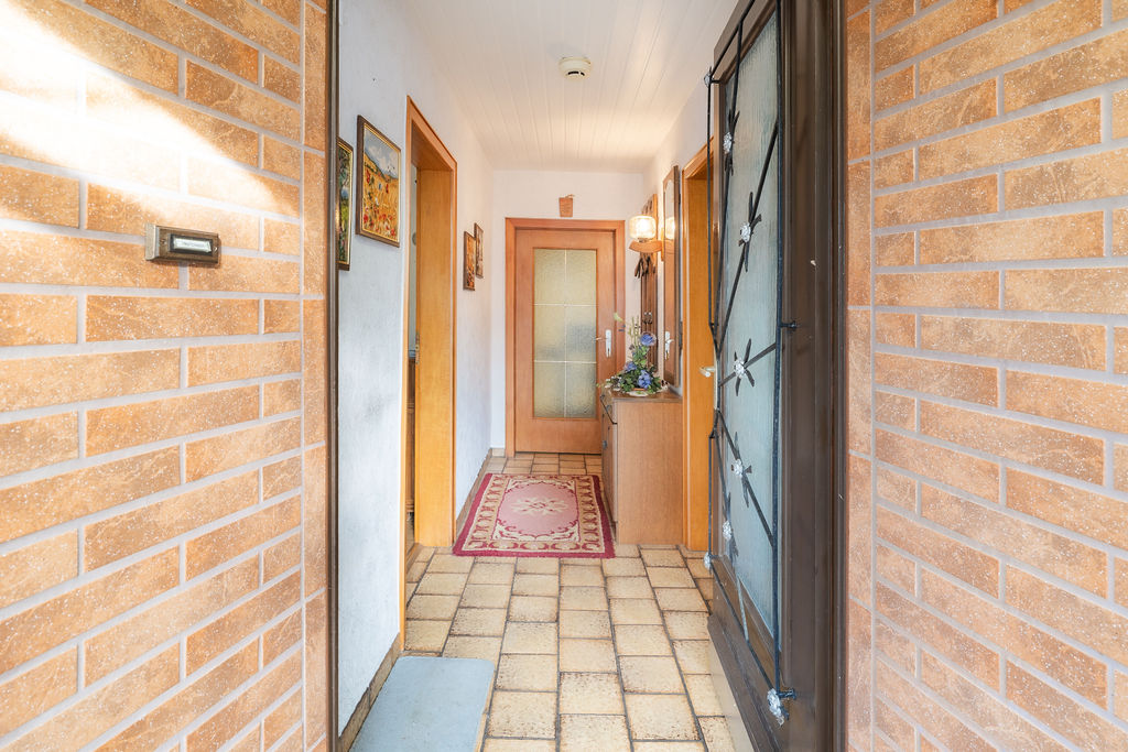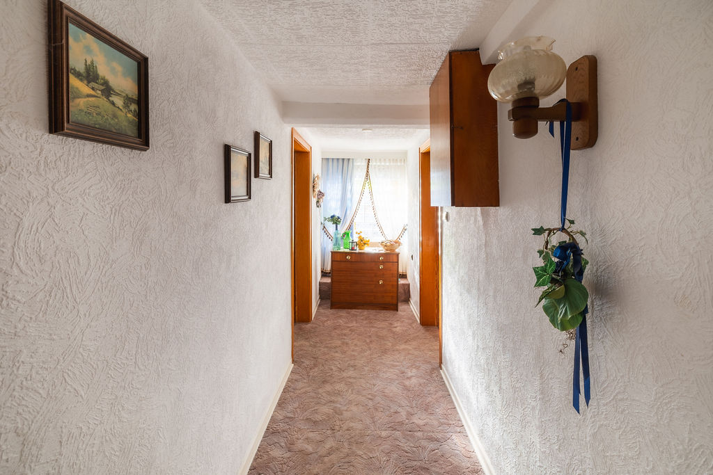 Willkommen in Ihrem zukünftigen Zuhause, durch den klassischen Flur gelangen Sie direkt in die großzügige Wohnküche. Sie präsentiert sich im rustikalen Stil der 70er Jahre – gepflegt, solide und bereit für frische Wohnideen.