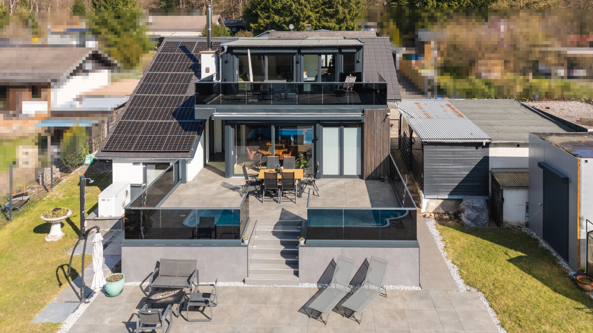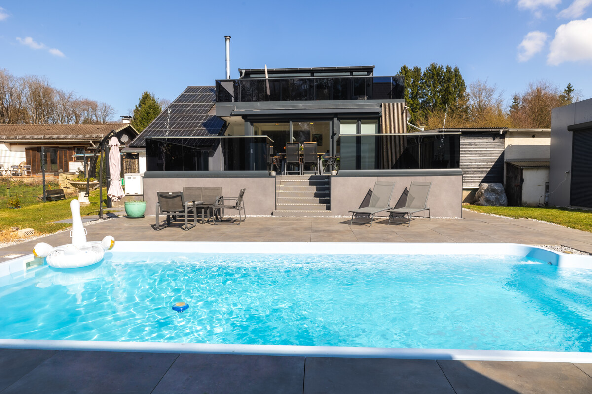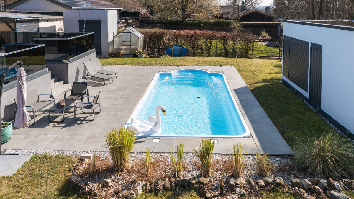 Draußen wird es dann richtig besonders: Der Außenbereich ist wie gemacht für gemeinsame Zeit. Die großzügige Terrasse bietet Platz für alles – vom Esstisch bis zur Lounge. Der Pool? Ganz klar der Star des Sommers. Abkühlung, Spaß und Urlaubsfeeling direkt vor der eigenen Tür.