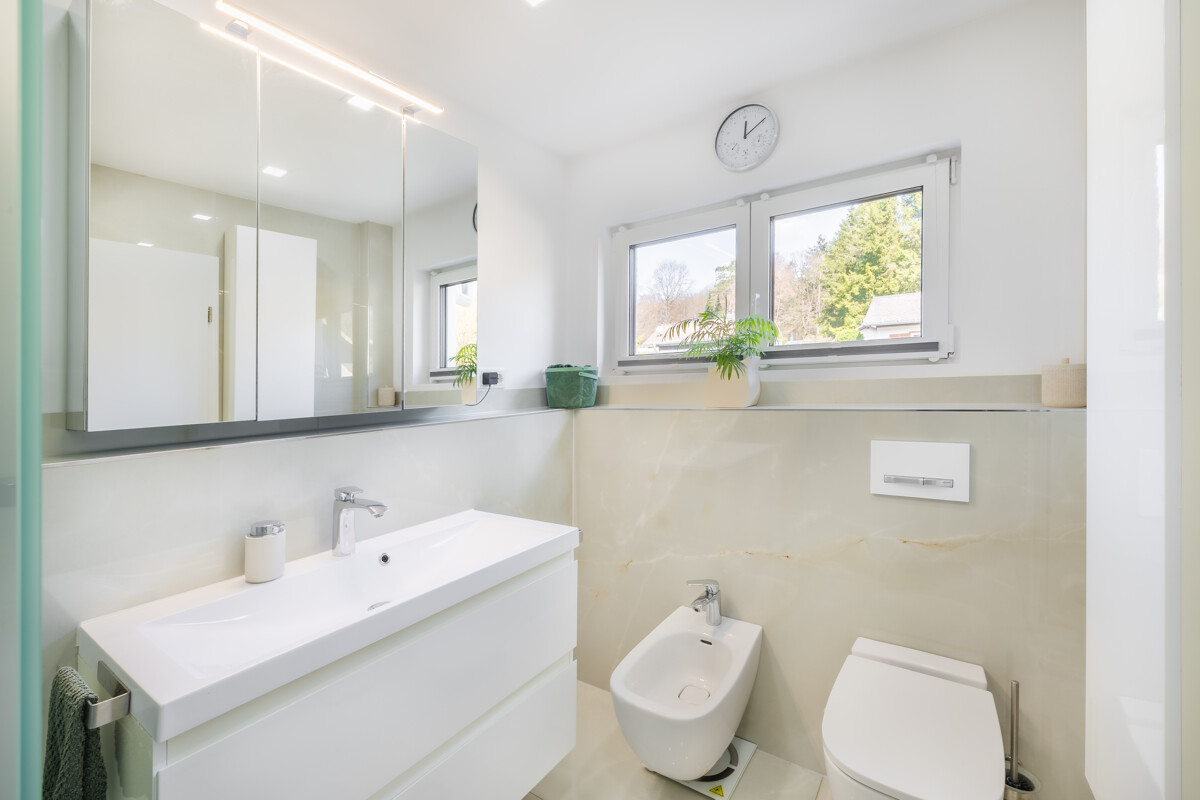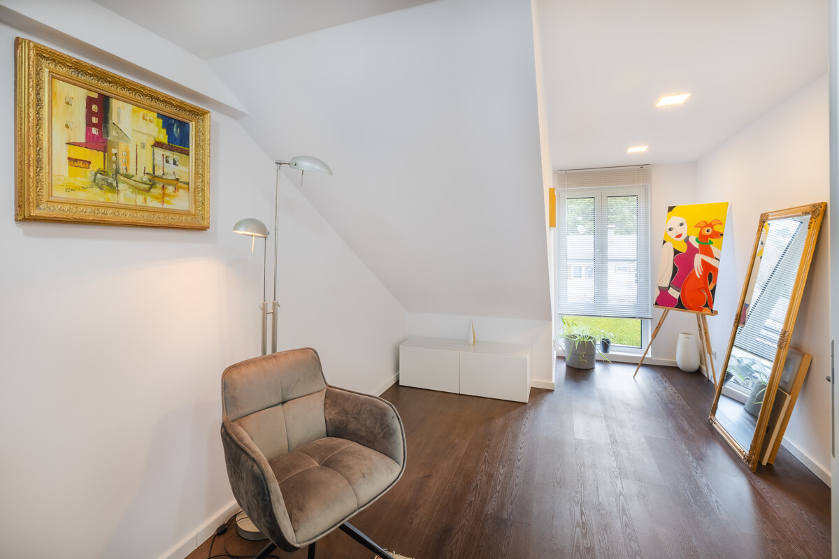 Im Obergeschoss geht das Raumgefühl genauso stimmig weiter. Hier finden alle ihren Rückzugsort – ob groß oder klein. Weitere Zimmer bieten Platz zum Schlafen, Lernen oder einfach zum Durchatmen. Ein zweites Badezimmer sorgt dafür, dass auch hektische Morgen entspannt bleiben dürfen.